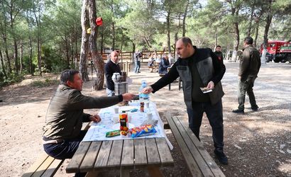 İzmir'de, Ramazan Bayramı tatili dolayısıyla orman yangınlarına karşı hazırlıklarını sürdüren Orman Bölge Müdürlüğü ekipleri, mesire alanlarında ve kent girişlerinde vatandaşları bilgilendiriyor.