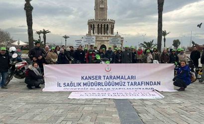 İzmir Demokrasi Üniversitesi Tıp Fakültesi ile İzmir İl Sağlık Müdürlüğü iş birliğiyle gerçekleştirilen etkinlikte, 'Serviks (Rahim Ağzı) Kanseri Farkındalık Ayı' kapsamında Konak'tan Alsancak Gündoğdu Meydanı'na kadar bisiklet turu düzenlendi. Katılımcılar, erken teşhisin önemine dikkat çekmek için pedal çevirdi.