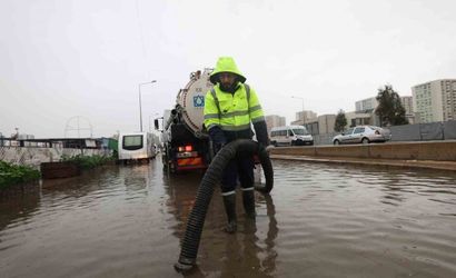 Meteoroloji'nin turuncu kodlu uyarısının ardından İzmir genelinde kuvvetli sağanak etkili oldu. İzmir Büyükşehir Belediyesi ekipleri 500 araç ve bin 600 personelle sahada görev yaparken, 153 ve 185 çağrı hatlarına gelen toplam 187 su baskını ihbarına anında müdahale edildi. Belediye, yağışlara karşı Afet Koordinasyon Merkezi (AKOM) bünyesinde kriz masası kurdu.