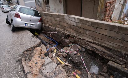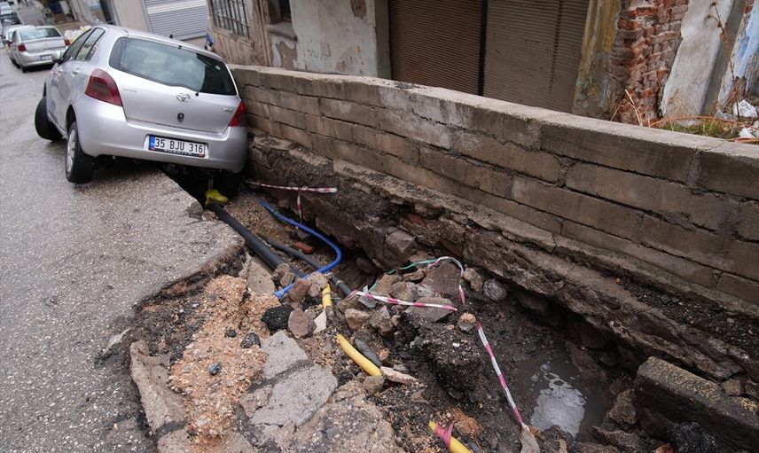 Bayraklı ilçesi 1639 Sokakta, kazı yapılan yol için dökülen mıcırların yağışla taşınması sonucu yol yüzeyinde çukur oluştu. Yolda park halindeki bir otomobil bu çukur nedeniyle yan yatarak hafif hasar aldı.