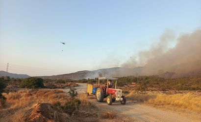 İzmir'in Urla ilçesinde, Barbaros Mahallesi'ndeki tarım alanında belirlenemeyen bir nedenle çıkan yangın, rüzgarın etkisiyle hızla ormanlık alana sıçradı.