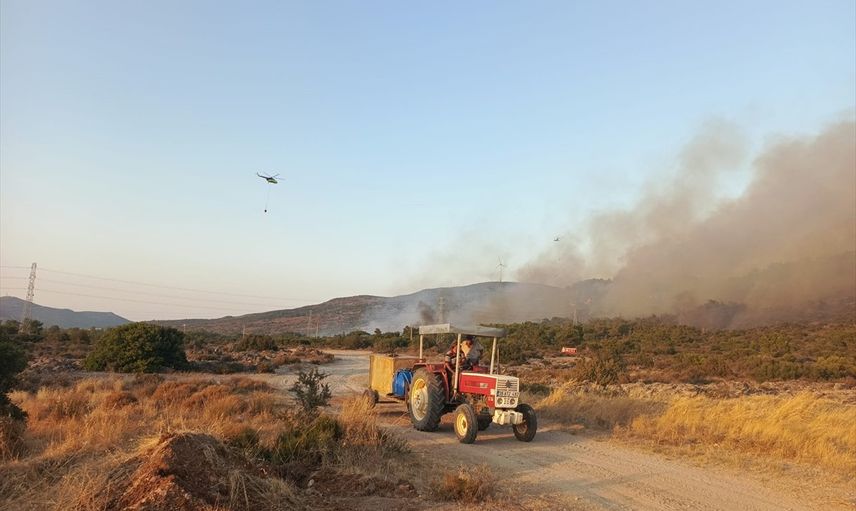 İzmir'in Urla ilçesinde tarım alanında başlayıp ormanlık alana sıçrayan yangına havadan ve karadan müdahale ediliyor.