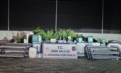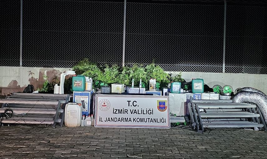 İzmir'in Seferihisar ilçesinde uyuşturucu operasyonunda yakalanan zanlı gözaltına alındı. Yapılan aramalarda 183 kök skunk bitkisi, 4 iklimlendirme çadırı, 16 led panel, 8 iklimlendirme filtresi, 10 iklimlendirme fanı ve 8 havalandırma filtresi ele geçirildi.