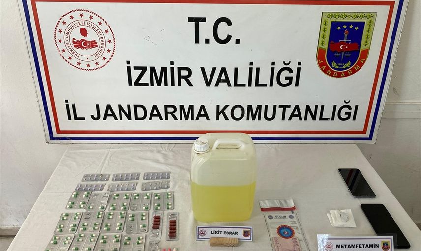 İzmir'de uyuşturucu operasyonlarında gözaltına alınan 16 şüpheliden 7'si tutuklandı. Aramalarda 3 litre likit esrar, 407 gram esrar, 250 gram kokain, 130 gram sentetik uyuşturucu, 324 sentetik hap, 955 kök Hint keneviri, 3 tabanca, 8 tabanca şarjörü, 2 av tüfeği, 44 av tüfeği kartuşu, 77 fişek, 2 hassas terazi, 3 uyuşturucu kullanma aparatı ile uyuşturucu suçundan elde edildiği değerlendirilen 55 bin 380 lira ve 2 çeyrek altın ele geçirildi.