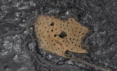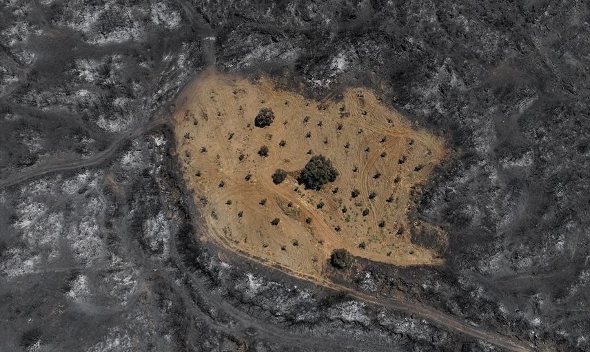 İzmir'in Ödemiş ilçesinde çıkan orman yangınında, çiftçi Ahmet Türk'ün daha önceden sürüp otlardan temizlediği bahçe, siyah örtüyle kaplanan bölgede yanmamış olmasıyla dikkati çekti.