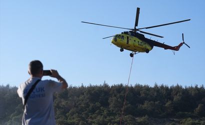 İzmir'in Aliağa ilçesinde başlayarak Foça'ya sıçrayan orman yangınına havadan ve karadan müdahale sürüyor. İzmir Orman Bölge Müdürlüğüne ait 6 helikopter, 46 arazöz, 9 dozer, 13 su ikmal aracı ve su tankeriyle yangına müdahale sürüyor.
