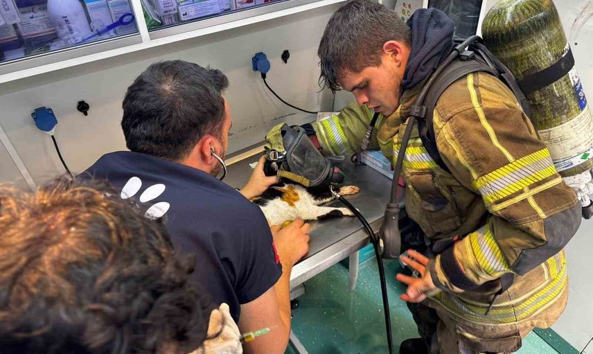 TORBALI’DAKİ BİR EV YANGININA MÜDAHALE EDEN EKİPLER, DAİREDE DUMANDAN ETKİLENEN KEDİLERİ BULUNDUKLARI YERDEN ÇIKARARAK, TEMİZ HAVA SOLUNUM CİHAZI İLE MÜDAHALE ETTİ.