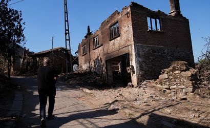 Dronla çekilen görüntüler, yangın sonrası yeşil alanların nasıl siyaha büründüğünü ortaya koyuyor. Yangında zarar gören bazı evler iş makineleri ile yıkılırken, konutlar inşa edilene kadar geçici barınma amacıyla konteyner kurulum çalışmalarına devam ediliyor.