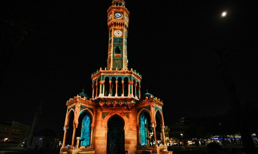 İzmir Kültür Yolu Festivali kapsamında kentin simgelerinden İzmir Saat Kulesi, çağdaş bir dijital sanat eserinin ışıklarıyla izleyicilerin karşısına çıktı.