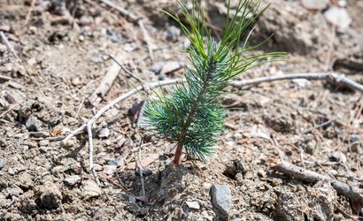 İzmir'in Karşıyaka ilçesinde 15 Ağustos'ta çıkan orman yangınında zarar gören alanda ağaçlandırma çalışmaları devam ediyor.