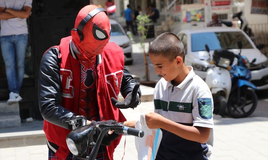 Türkiye'yi Örümcek Adam kostümüyle gezme hayaliyle yola çıkan 26 yaşındaki Ayaz Salih Koç, 66. durak olarak Siirt'te vatandaşlarla buluştu.