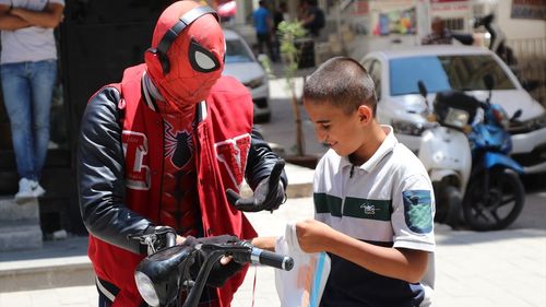 Örümcek Adam kostümüyle Türkiye'yi gezen Ayaz Salih Koç, Siirt'te çocuklarla buluşarak neşe dağıttı.
