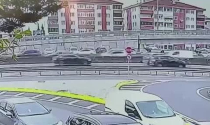 Olay anı çevredeki bir güvenlik kamerasına saniye saniye yansıdı. Görüntülerde otomobilin savrularak bariyere çarptığı, ardından devrilip sürüklendiği ve bu sırada araçtan bir cismin yola fırladığı görülüyor.