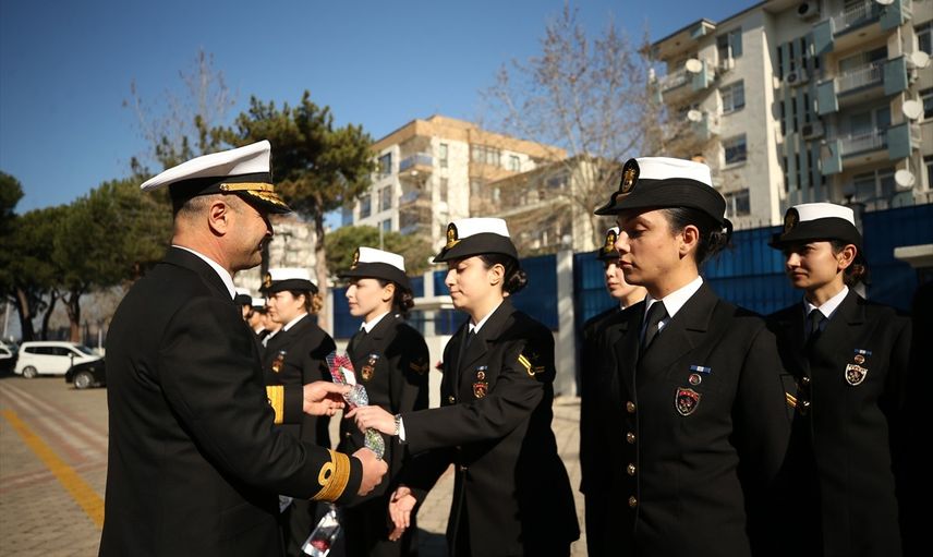 Kadın deniz astsubayları ile Milli Savunma Üniversitesi Deniz Harp Okulunun kadın öğrencileri, 8 Mart Dünya Kadınlar Günü dolayısıyla Çanakkale Boğazı'nda TCG Nusret Gemisi ile düzenlenen seyir faaliyetine katıldı. Boğaz ve Garnizon Komutanı Tuğamiral Mustafa Biçen tarafından karşılanan heyete karanfil takdim edildi.