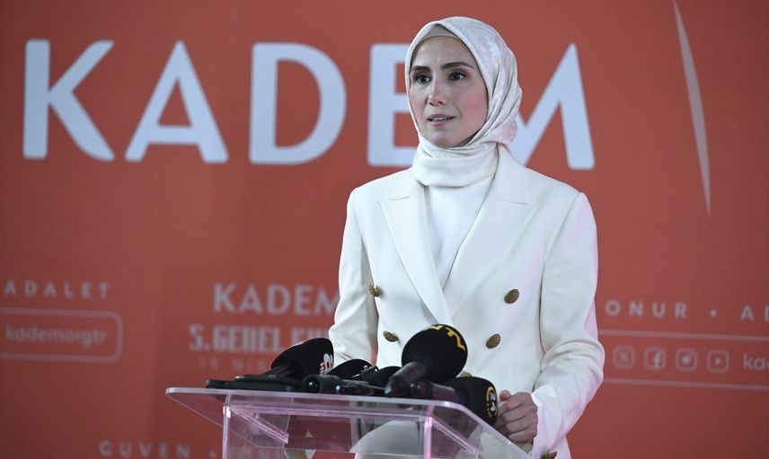 KADEM Mütevelli Heyet Başkanı Sümeyye Erdoğan Bayraktar, Cumhurbaşkanı Recep Tayyip Erdoğan'ın katılımıyla Atatürk Kültür Merkezi'nde düzenlenen KADEM 5. Genel Kurulu'na katılarak konuşma yaptı.