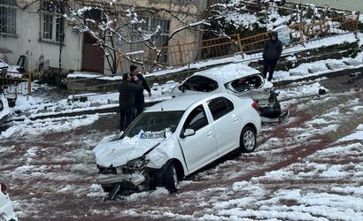 İstanbul'un Kağıthane ilçesinde meydana gelen kaza, karla kaplı yokuşlarda sürücülere zorluk çıkarmaya devam ediyor. Harmantepe Mahallesi Erbap Sokak'ta, Abdülkadir Ç. adlı sürücünün kullandığı 34 NK 7255 plakalı otomobil, kış şartlarının getirdiği zorluklarla yokuşu inerken kayarak kontrolden çıktı.
