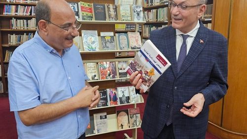 Türkiye'nin Kahire Büyükelçisi Salih Mutlu Şen, Büyük Kahire Kütüphanesi'ni ziyaret ederek 16 kitap bağışladı; kütüphanede yaklaşık 120 bin eser bulunuyor.