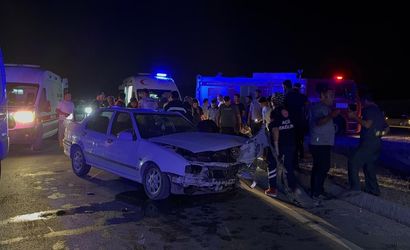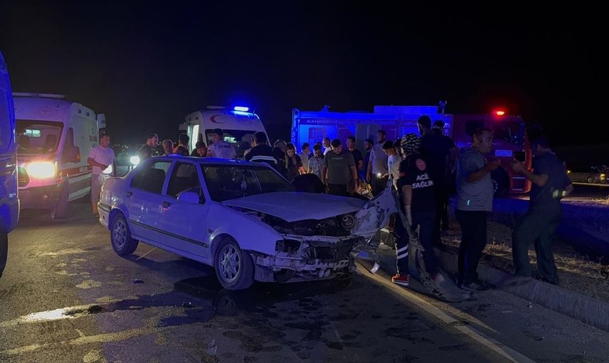 Kahramanmaraş'ın Afşin ilçesinde meydana gelen kazada, iki otomobilin çarpışması sonucu 10 kişi yaralandı.