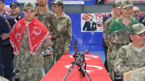 Kahramanmaraş'ta, 20 engelli birey, temsili askerlik töreni ile bir günlüğüne askerlik yaptı. Tören, Türk bayrağına yeminle son buldu.