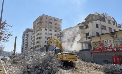 Kahramanmaraş'ta ağır hasarlı binaların yıkımı sürüyor