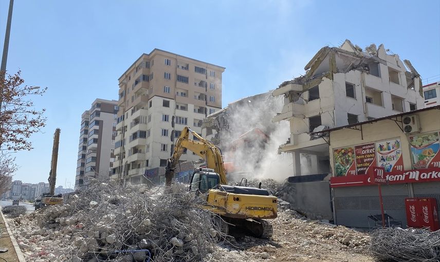 Pazarcık ve Elbistan merkezli depremlerde zarar gören binaların kontrollü yıkım ve enkaz kaldırma çalışmaları yetkililer koordinasyonunda devam ediyor.
