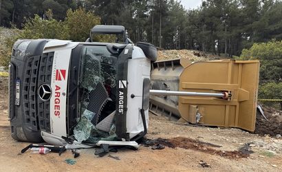 Kahramanmaraş'ın Dulkadiroğlu ilçesinde, devrilen hafriyat kamyonunun sürücüsü hayatını kaybetti.