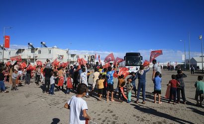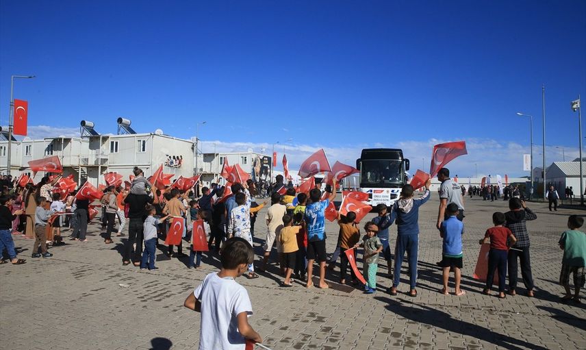 Otobüslere binen Suriyeliler, merkezdeki diğer sığınmacılar tarafından Türk bayrakları ve Türkiye sloganları eşliğinde Hatay'daki Cilvegözü Sınır Kapısı'na uğurlandı.