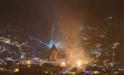 Turistler gün boyu bölgeyi gezip, akşam saatlerinde eğlence merkezlerine yönelirken, düzenlenen havai fişek gösterileri dron ile görüntülendi ve izleyenleri mest etti. Dakikalarca süren gösteriler, seyir tepelerinde yoğunluğa neden oldu.
