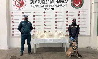 Tarama sonucu yoğunluk tespit edilmesi üzerine Edirne Gümrük Muhafaza ekipleri, narkotik dedektör köpeği "Alfa"'nın katılımıyla detaylı bir arama gerçekleştirdi.