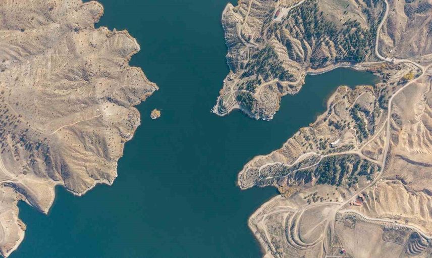 Görüntülerde barajı çepeçevre saran tepelerin doğal kıvrımları, yer yer görülen tarım alanları ve Kızılırmak'ın taşıdığı suyun berraklığı net şekilde kaydedildi. Bu kompozisyon, bölgenin hem doğal hem de görsel zenginliğini ortaya koyuyor.