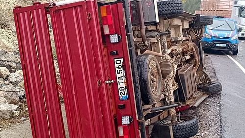 Karabük Eskipazar'da İsmetpaşa mevkiinde su kanalına devrilen 28 TA 560 plakalı kamyonette 5 kişi yaralandı; yaralılar hastaneye kaldırıldı.