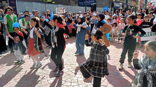 Karabük'te çocuklar, Gazze'ye yönelik saldırıları protesto etmek ve Doğu Türkistan'a destek vermek için yürüdü.