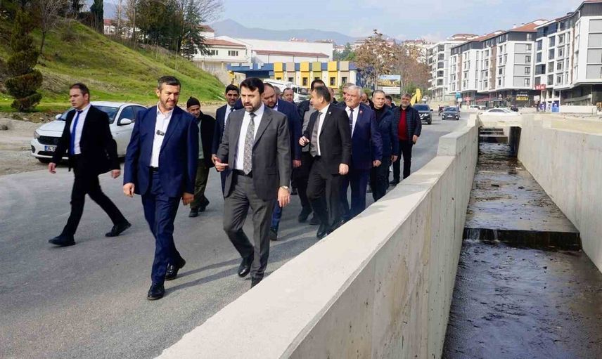 Heyet, 2 bin metrelik yeni bulvar düzenlemesi, dere ıslahı ve çevresel iyileştirmeler, asfalt serimi, kaldırım ve yaya yolu yenilemeleri, peyzaj uygulamaları ve modern aydınlatma sistemlerinin yapıldığı alanı gezdi; Belediye Başkanı Özkan Çetinkaya çalışmalar hakkında detaylı bilgi verdi.