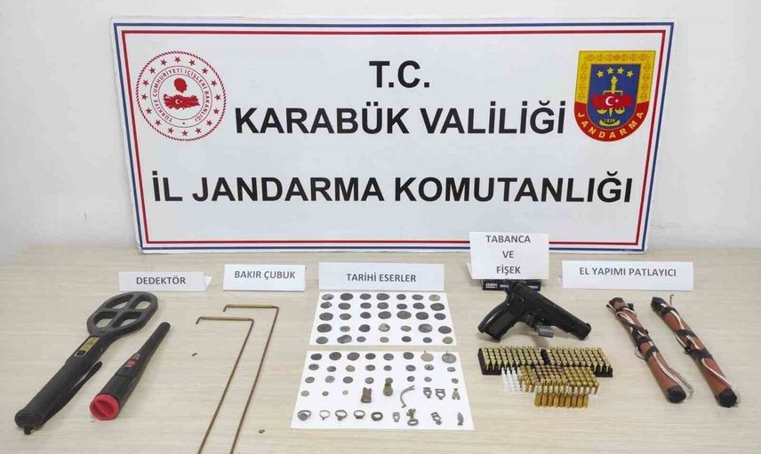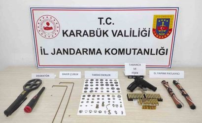 Jandarma ekipleri ayrıca birer adet ruhsatsız tabanca ve şarjör, 170 adet fişek, 2’şer adet el dedektörü, bir bakır define arama çubuğu ile el yapımı patlayıcı maddeye de el koydu.