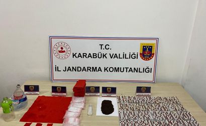 12 adet farklı ebatlarda uyuşturucu madde emdirilmiş peçete, 791 adet sentetik ecza hap, 34,27 gram sentetik kannabinoid hammaddesi, 20,23 gram sentetik kannabinoid, bin 600 adet kilitli şeffaf poşet ve 3 adet uyuşturucu kullanma aparatı ele geçirildi.