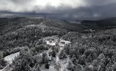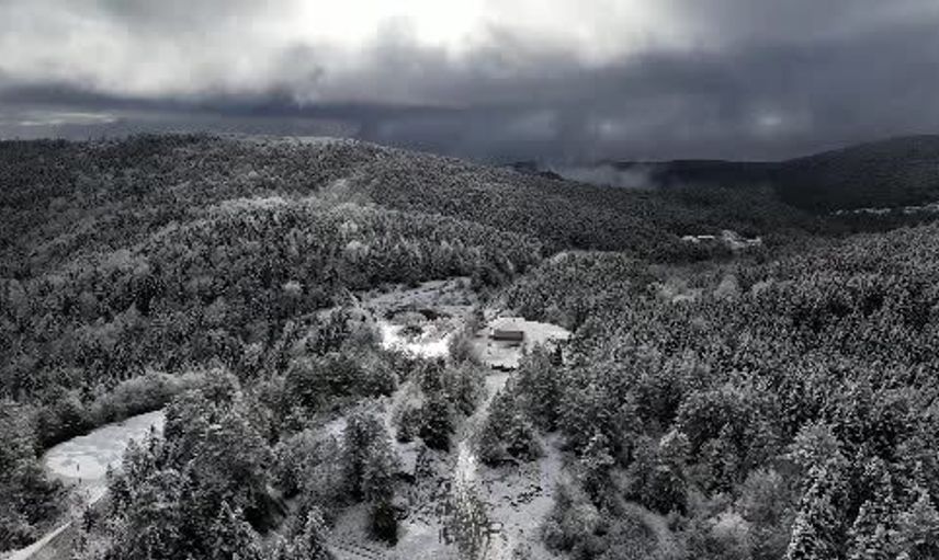 Kar yağışının etkili olduğu ormanlık alanlardaki doğal güzellikler havadan dron ile görüntülendi. Karla kaplanan ağaçlar ve geniş beyaz örtü, seyirlik manzaralar sundu.