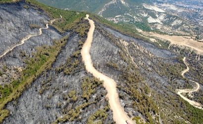 Karabük'te, 5 Ağustos'ta başlayan ve 7 Ağustos'ta yeniden alevlenen orman yangını, havadan ve karadan yaklaşık 31 saat süren yoğun müdahaleyle kontrol altına alındı. Yangının ardından zarar gören ormanlık alan, dronla havadan görüntülendi.