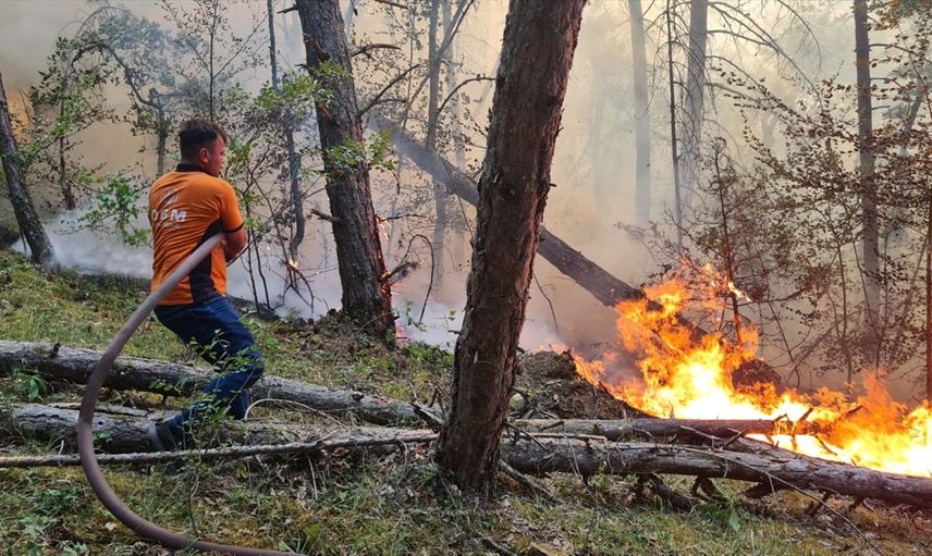 Karabük'te ormanlık alanda çıkan yangın söndürülmeye çalışılıyor.