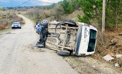 Karabük'ün Eskipazar ilçesinde devrilen hafif ticari araçtaki polis memuru yaşamını yitirdi, 1 kişi yaralandı.