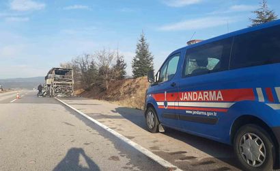 Jandarma ekipleri, yangın sırasında önlem alarak karayolunda ulaşımı bir süre tek şeritten kontrollü olarak sağladı.