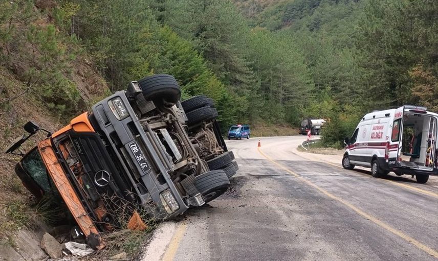 Karabük'ün tarihi Safranbolu ilçesinde meydana gelen kazada, zift yüklü bir kamyon su kanalına devrildi. Olayda 3 kişi yaralanarak hastaneye kaldırıldı.