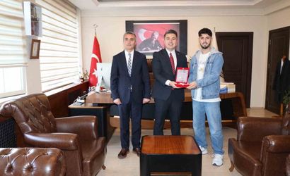 Çizim çalışmalarıyla dikkat çeken üniversite öğrencisi Arafat Ercan, makamında kabul eden Karacasu Kaymakamı Mehmet Gündoğdu tarafından tebrik edilerek plaket ile onurlandırıldı. Kaymakam Gündoğdu, Ercan’a yeteneği için teşekkür etti ve plaket takdim etti.