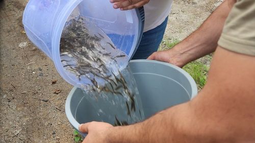 Trabzon'un Araklı ilçesindeki Karadere Vadisi'ne 15 bin alabalık yavrusu salındı.