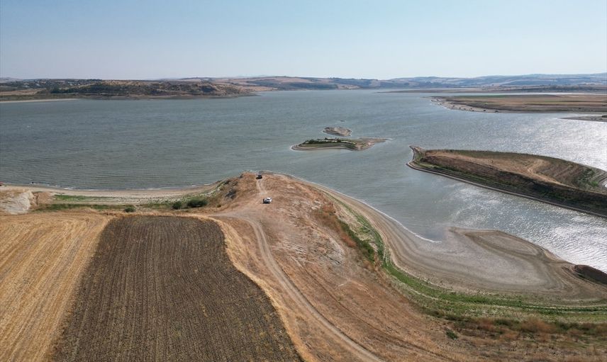 Tekirdağ'da sulama ve içme suyu ihtiyacını karşılayan Karaiğdemir Barajı'nın su seviyesi, kuraklık nedeniyle hızla geriledi.