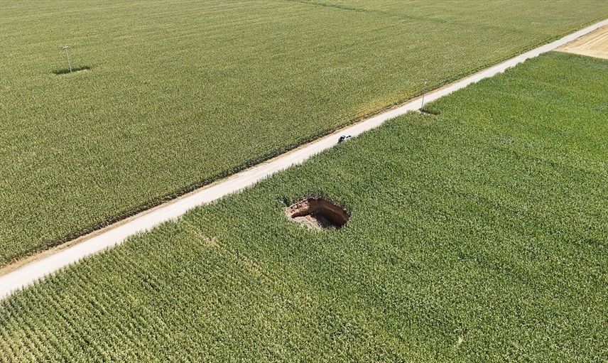 Olay, mısır tarlasında sulama boruları toplanırken fark edilmesi üzerine yetkililere bildirildi. İhbar üzerine bölgeye gelen İl Afet ve Acil Durum Müdürlüğü ekipleri obruk çevresinde inceleme yaptı.