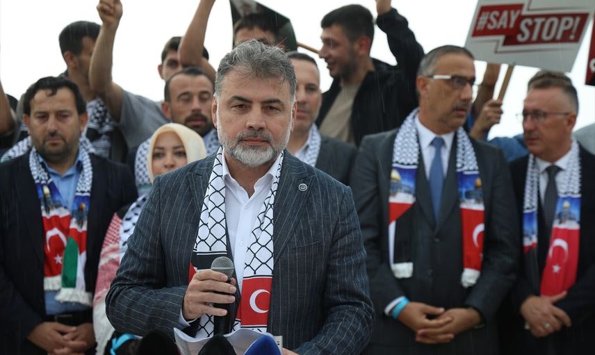 Yenimahalle'de düzenlenen programla teknelere Türk ve Filistin bayrakları asıldı
