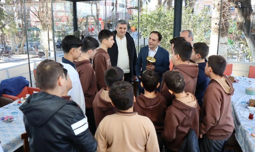Karpuzlu Kaymakamlığı, Aydın birincisi olan Şehit Şenol Akar Ortaokulu Yıldız Erkekler Voleybol Takımı için moral kahvaltısı düzenledi.