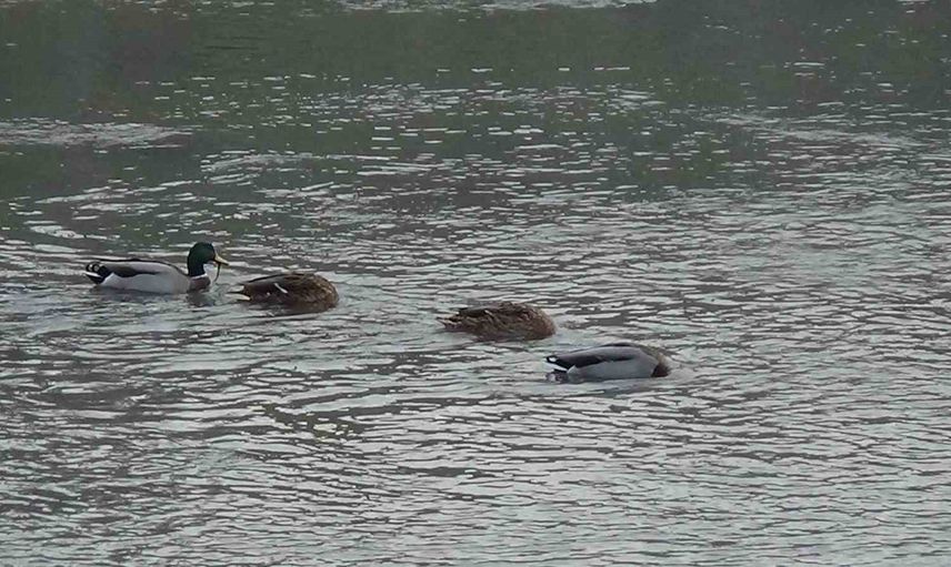 Göç eden yeşilbaş ve boz ördekler, şehir merkezinden geçen sulak alanlarda durup besleniyor. Burada rahatsız edilmeden gönüllerince yemlenen ördekler ardından göç yolculuklarına devam ediyor.