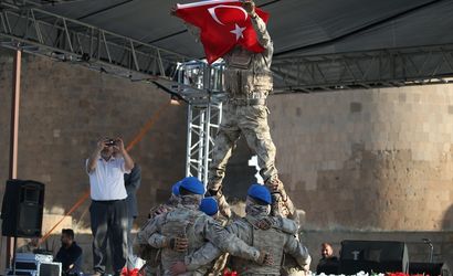 Konuşmaların ardından Erzurum Büyükşehir Belediyesi Mehteran Takımı gösteri sundu. Ani şehrinin anahtarı ile Kafkas Halk Oyunları ekibi tarafından açılan Türk bayrağı Vali Ziya Polat'a teslim edildi. Kars İl Jandarma Komutanlığı'na bağlı komando timi gösteri gerçekleştirdi.