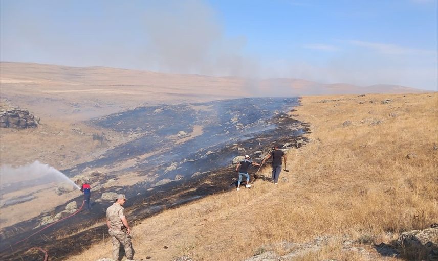 Kars'a bağlı Gelirli köyü arazisinde, henüz belirlenemeyen bir nedenle anız yangını çıktı.